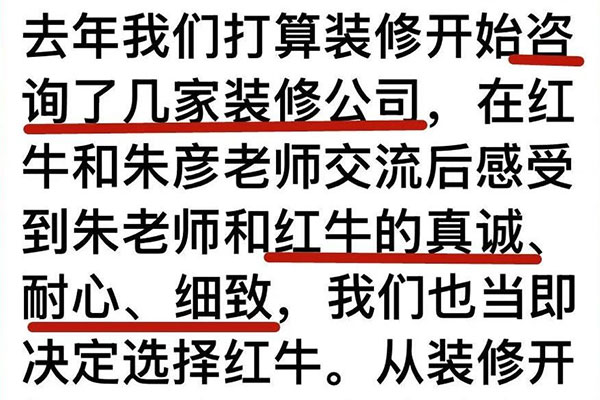 來自業主的超長評價:始于信任,忠于品質,見證南京紅牛裝飾口碑的力量!